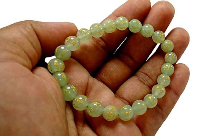 กำไลหินอะเวนเจอรีนสีเขียวทำมือ พร้อมจี้ออม มณี ปัทเม ฮุม ทรงกลม เสริมฮวงจุ้ย เครื่องประดับแฟชั่นสำหรับผู้ชายและผู้หญิง ของขวัญพลังงานจากอัญมณี