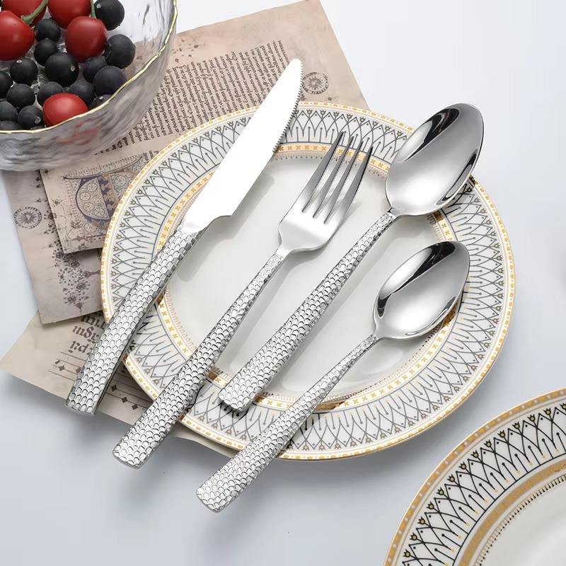 Handmade Hammer Grain square Handle Water Cube Cutlery Spoon Creative Hotel Western Restaurant Tableware