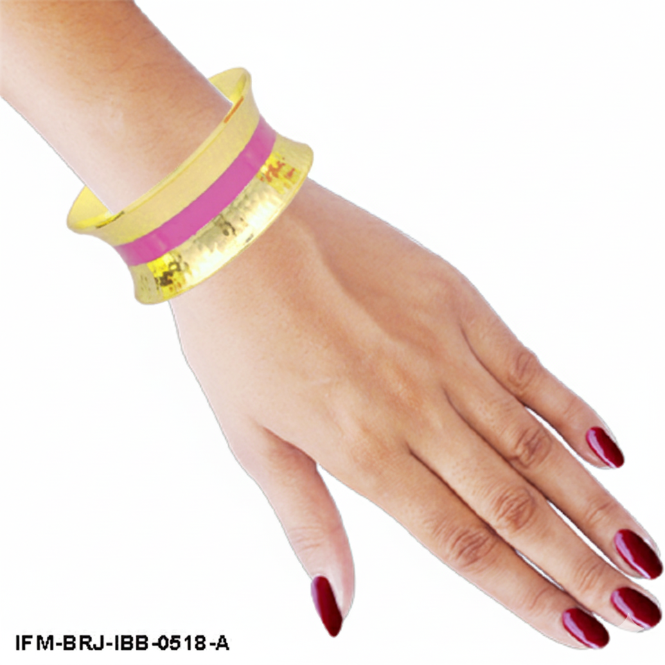 กำไลข้อมือทองเหลืองตอกลายทำมือ ประดับด้วยแถบสีชมพูเคลือบเงา ปรับขนาดได้ สไตล์โบฮีเมียน สำหรับผู้หญิง