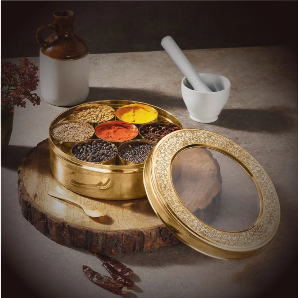 มาซาลาแดบบ้าทำด้วยมือมี7ฝาปิดที่ซับซ้อนและประณีตสำหรับห้องครัวอินเดีย