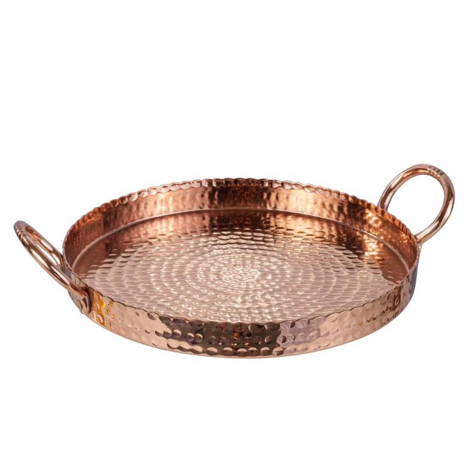 ถาดเสิร์ฟทองแดงทำด้วยมือพร้อมที่จับ | จานกลมสำหรับตกแต่งบ้านห้องครัวห้องอาหารและใช้เป็นของขวัญ