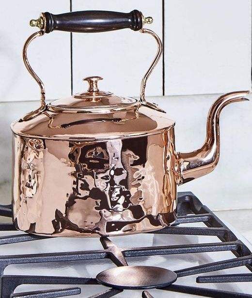กาน้ำชาทองแดงตีลายทำมือ พร้อมด้ามจับไม้ลายดอกไม้ตกแต่ง สวยงามหรูหราแบบดั้งเดิม เหมาะสำหรับใช้ในครัวและเป็นของขวัญ