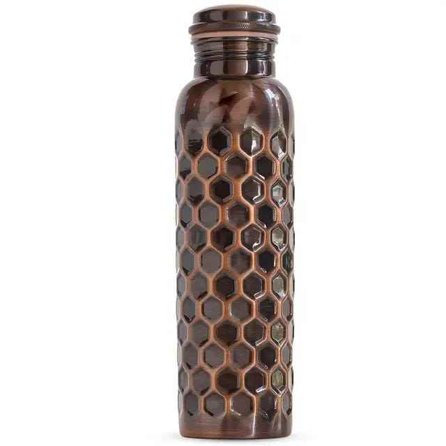 ขวดน้ำทองแดงแข็งแบบแฮนด์เมดสำหรับใส่น้ำดื่มสำหรับเดินทาง