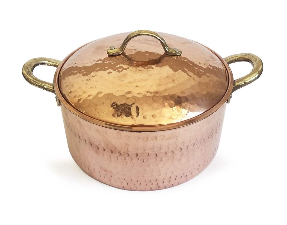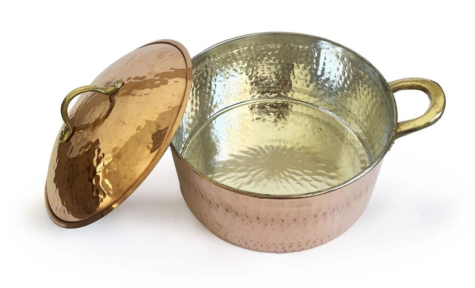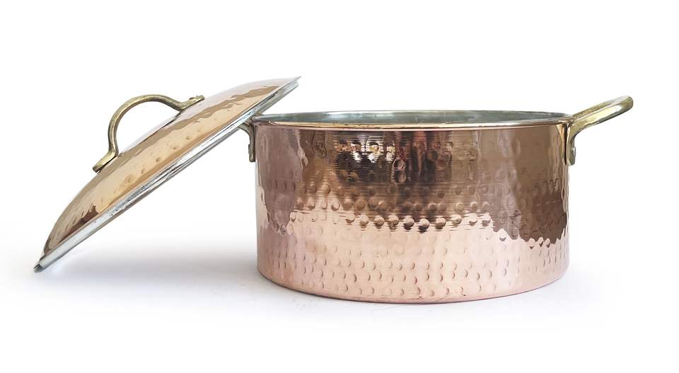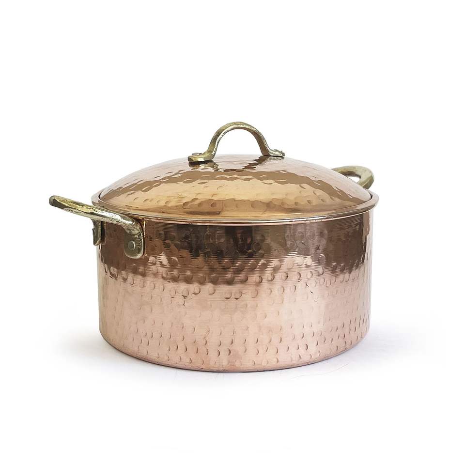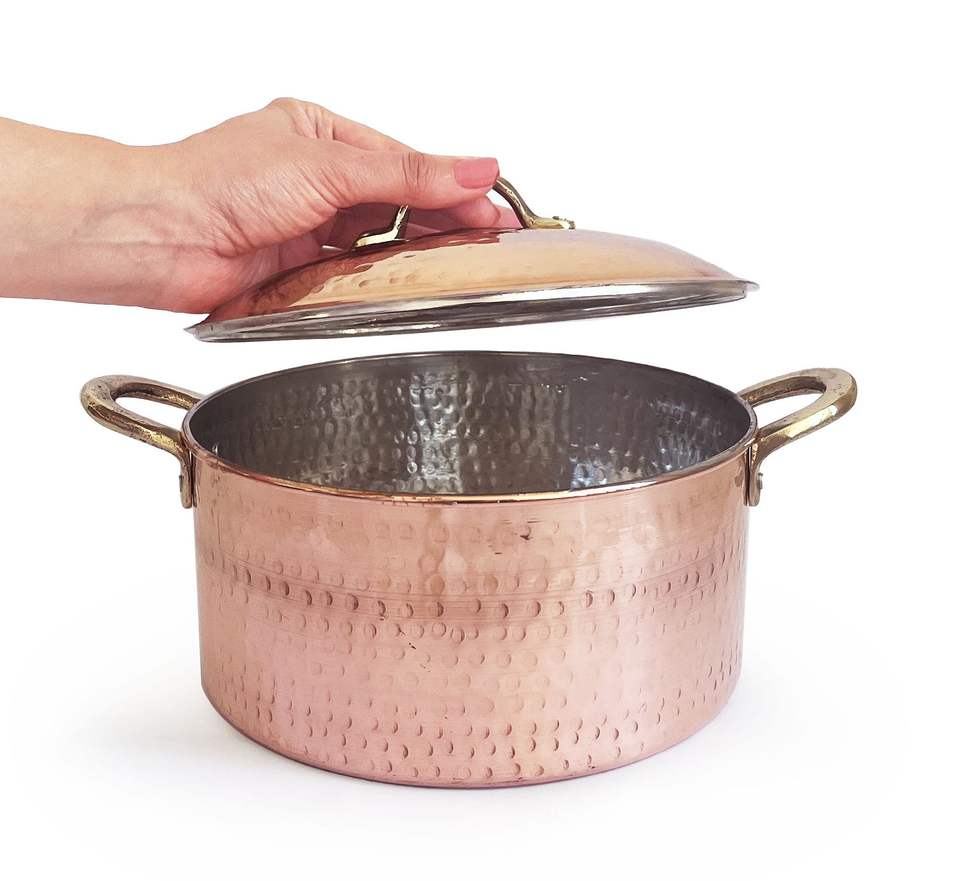 หม้อต้มทองแดงแบบอิตาลีทำมือทุบ,หม้อตุ๋นหม้อต้มซุปพร้อมฝาปิดทำด้วยมือ