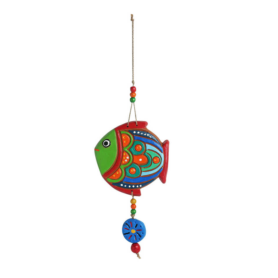ชุดแขวนผนังดินเผาสำหรับตกแต่ง2ชิ้นทำด้วยมือ & ทาสีด้วยมือ