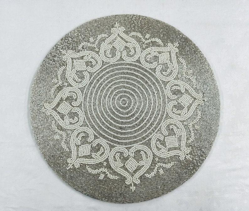 Handmade Heart Shape Beaded Placemat Decorative Table Mat for Valentine Day Dinner and Romantic Dining Table Decor