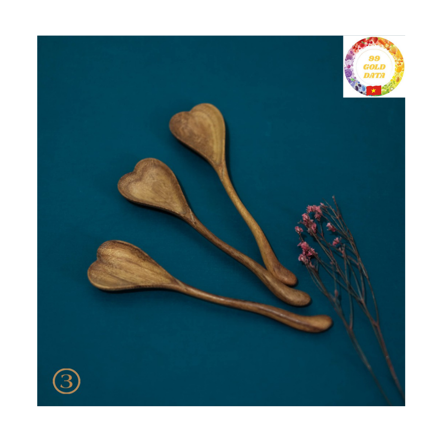 ช้อนไม้รูปหัวใจทำด้วยมือเป็นมิตรต่อสิ่งแวดล้อมสำหรับกวนและเสิร์ฟในครัว