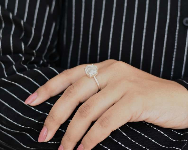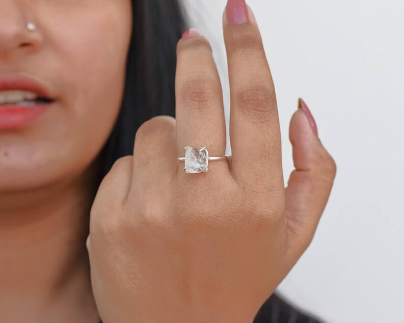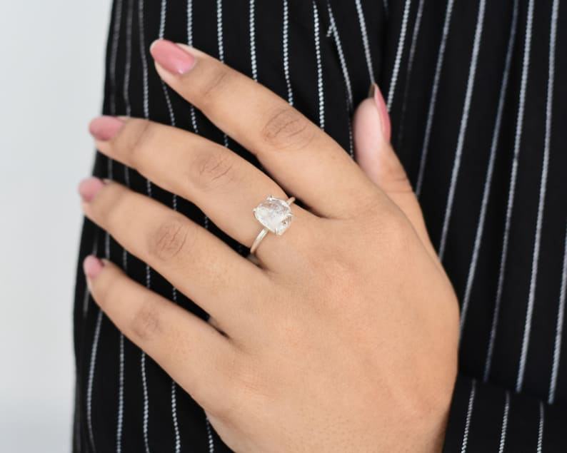 แหวนพลอยสีขาวปะการังดิบทำด้วยมือ925เงินสเตอร์ลิงทำด้วยมือได้รับการรับรองความร้อนจากบุคคลที่สาม