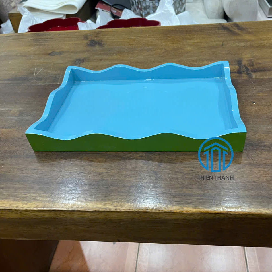 ถาดเสิร์ฟไม้เคลือบเงาทำมือ รูปทรงสี่เหลี่ยมผืนผ้า สำหรับตกแต่งบ้าน โรงแรม ร้านอาหาร โต๊ะกาแฟ