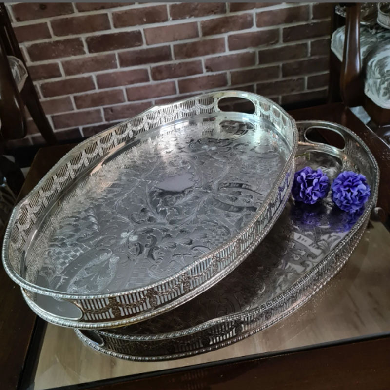 ถาดเสิร์ฟรูปวงรีทำมือคุณภาพสูงจากอะลูมิเนียมเคลือบเงาสีเงิน ราคาประหยัด