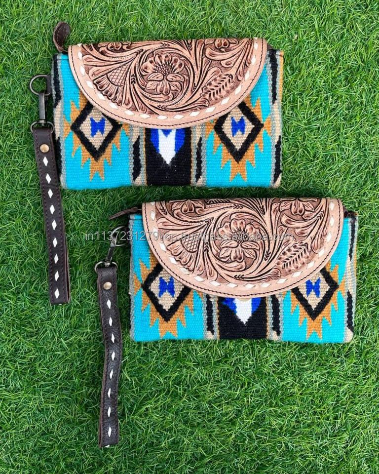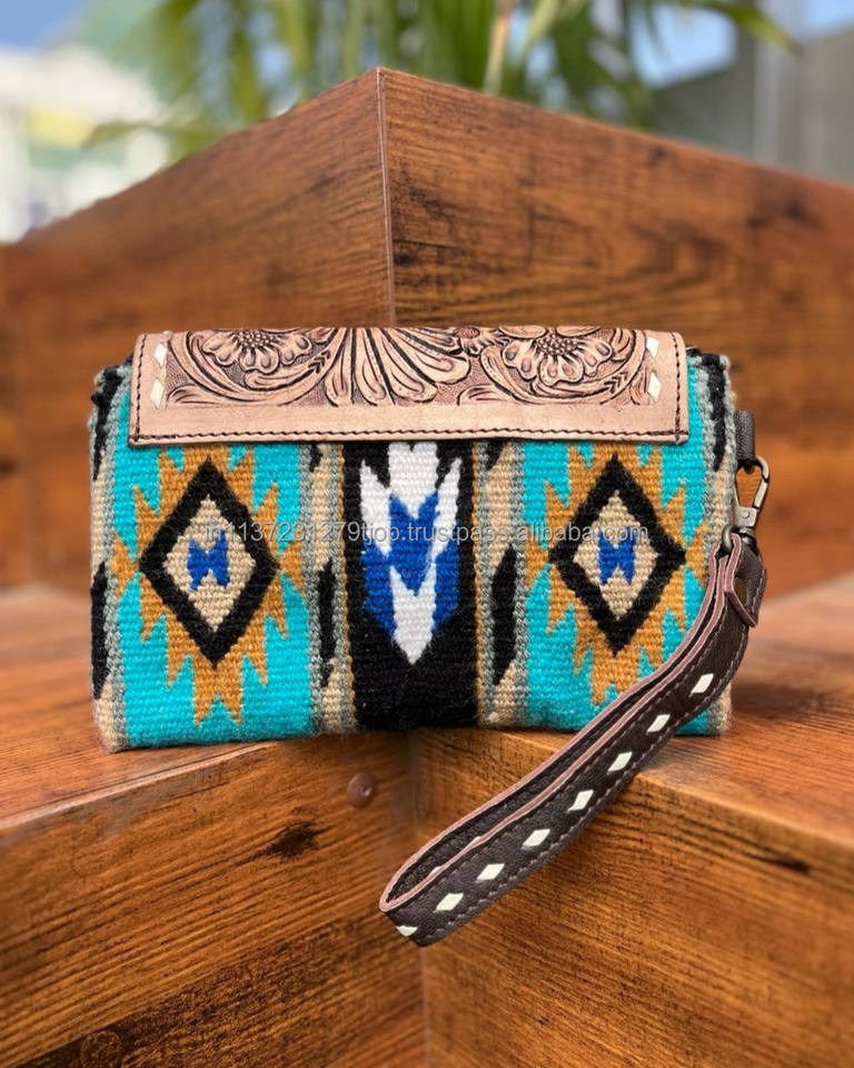 กระเป๋าคลัทช์หนังแฮนด์เมด aztec tooled คุณภาพสูงมีสไตล์สำหรับผู้หญิงกระเป๋าสตางค์แรงบันดาลใจจากอานผ้าห่มข้อมือ