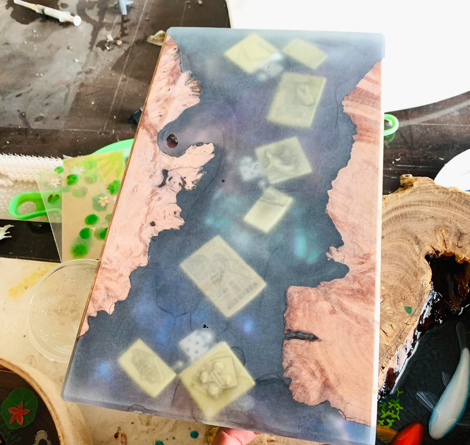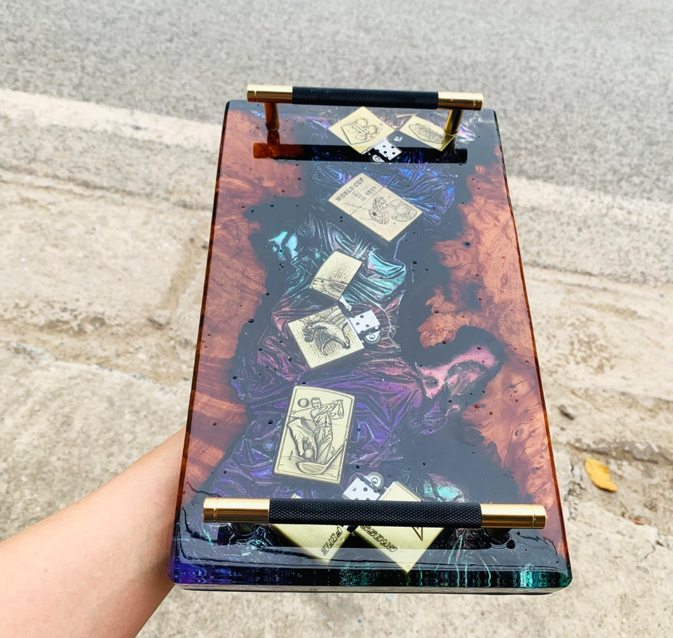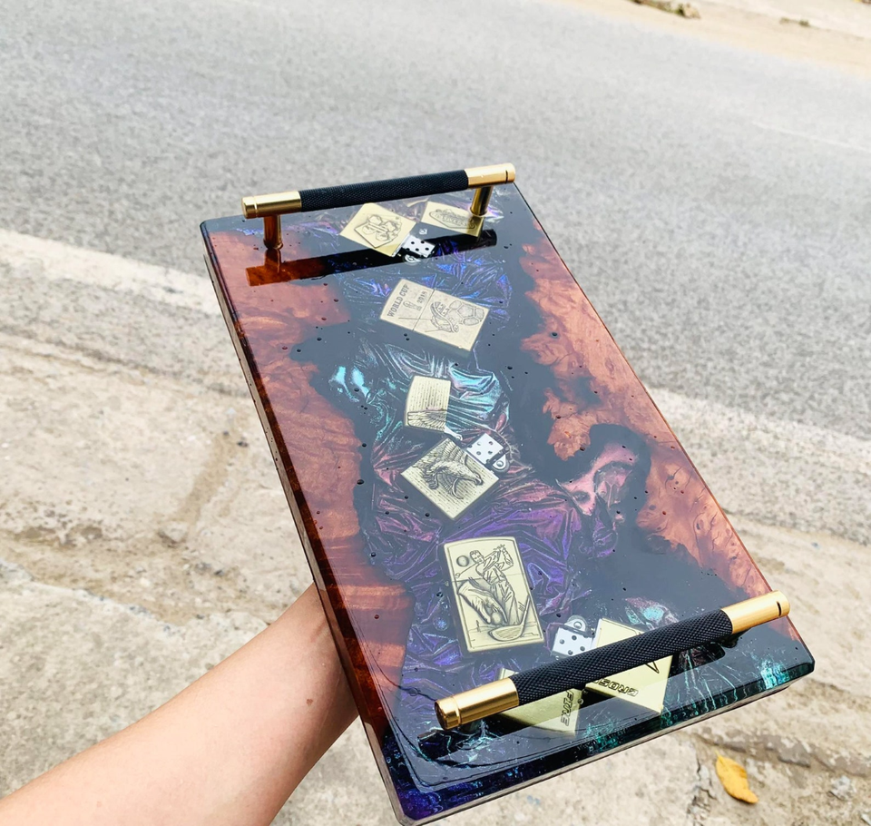 ถาดเรซินอีพ็อกซี่เรซินอีพ็อกซี่ผิวหินอ่อนเคลือบทองปรับแต่งได้สำหรับเสิร์ฟชากาแฟ