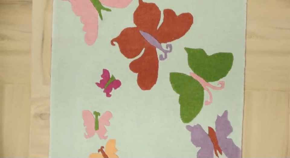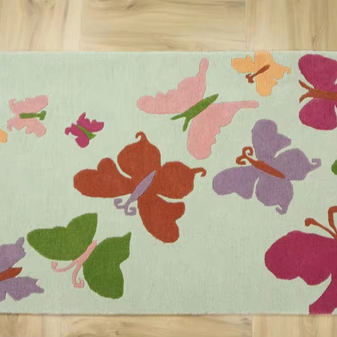 พรมผูกโบว์ขนสัตว์ปักลายผีเสื้อในร่มดีไซน์แบบนามธรรมสำหรับห้องนั่งเล่นห้องนอน