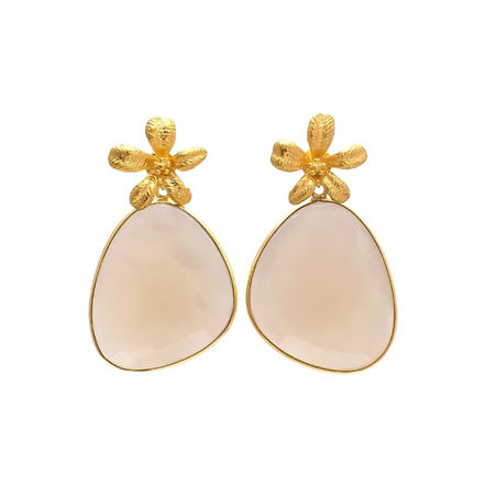 Handmade High Quality Natural Gray Chalcedony Bezel Earrings Trillion Shape Gemstone Drop Gold Plated Elegant Vintage Party