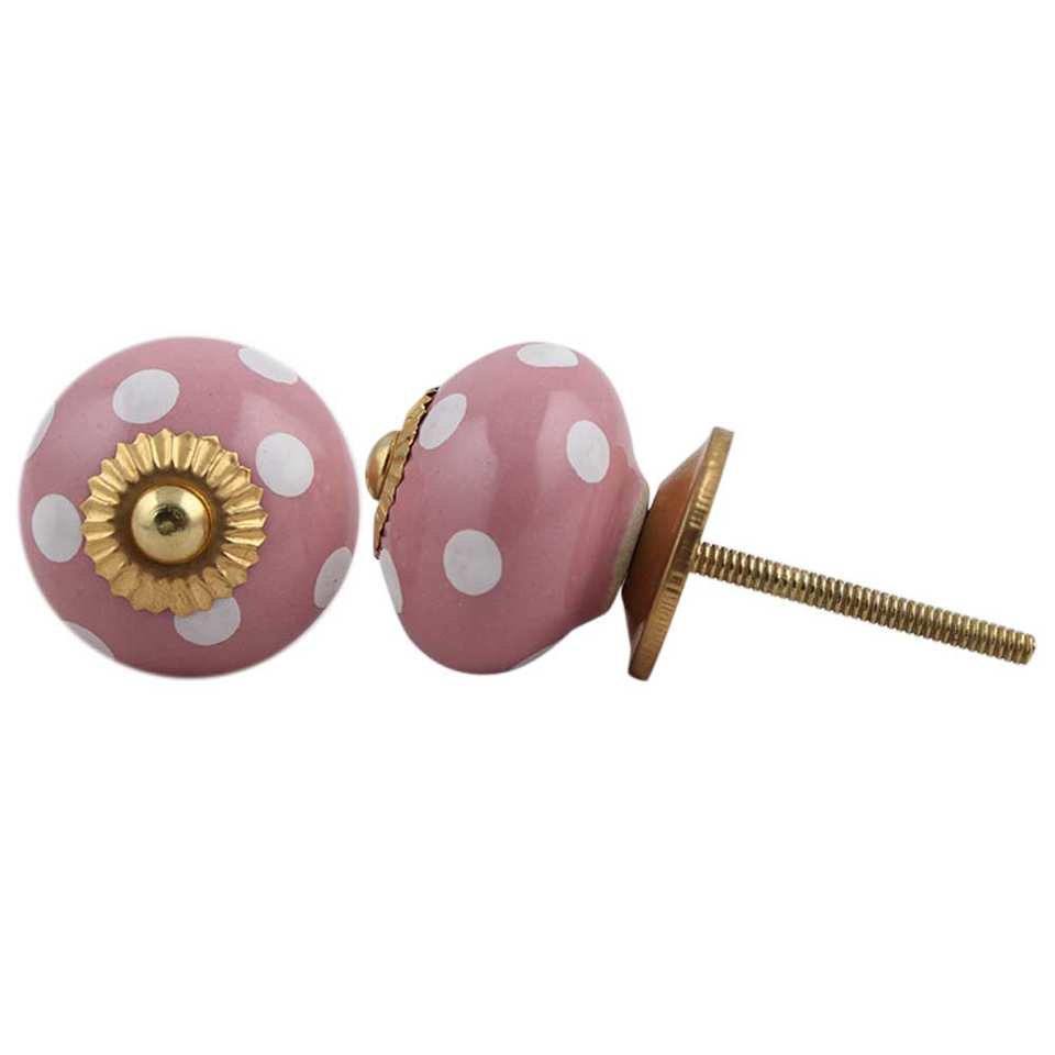 มือจับลิ้นชักทรงกลมลายจุดเซรามิกสีชมพู,งานแฮนด์เมดสำหรับตู้เอกสารแบบดึงที่จับประตูตู้ห้องครัวขายส่ง