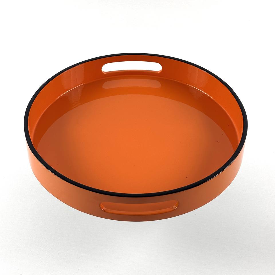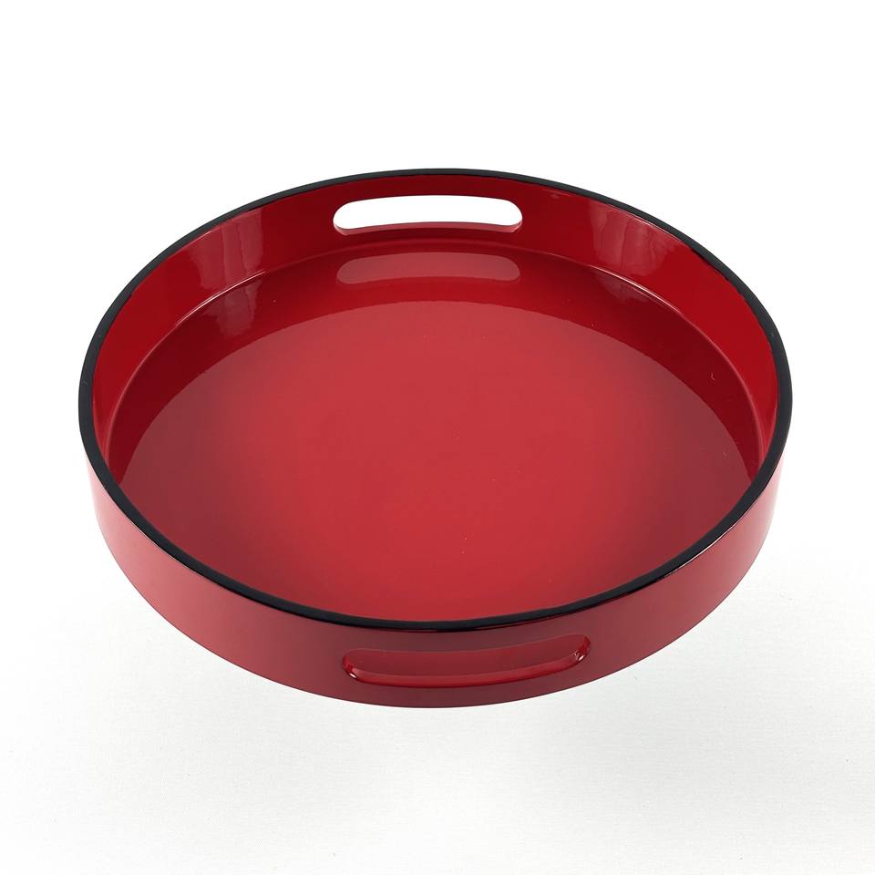 ถาดเสิร์ฟ MDF ทรงกลมทำด้วยมือเคลือบแล็กเกอร์ผิวมันอย่างยั่งยืนและมีสีสันสำหรับตกแต่งบ้าน
