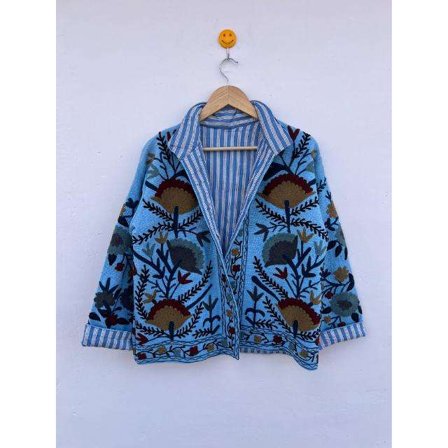 เสื้อคลุมไหมพรมปักลายซูซานี งานแฮนด์เมด คุณภาพสูง ผ้าฝ้าย ใส่ได้ทั้งฤดูหนาวและฤดูร้อน สำหรับผู้หญิง แบบสองด้าน ใส่ได้ทั้งสองด้าน เป็นมิตรกับสิ่งแวดล้อม เหมาะสำหรับเป็นของขวัญ