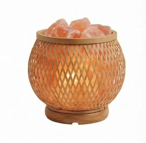 โคมไฟเกลือหิมาลัยทำมือ ตะกร้าไม้ไผ่ธรรมชาติ เครื่องฟอกอากาศเพื่อการบำบัด สร้างบรรยากาศ แสงกลางคืนสำหรับบ้าน