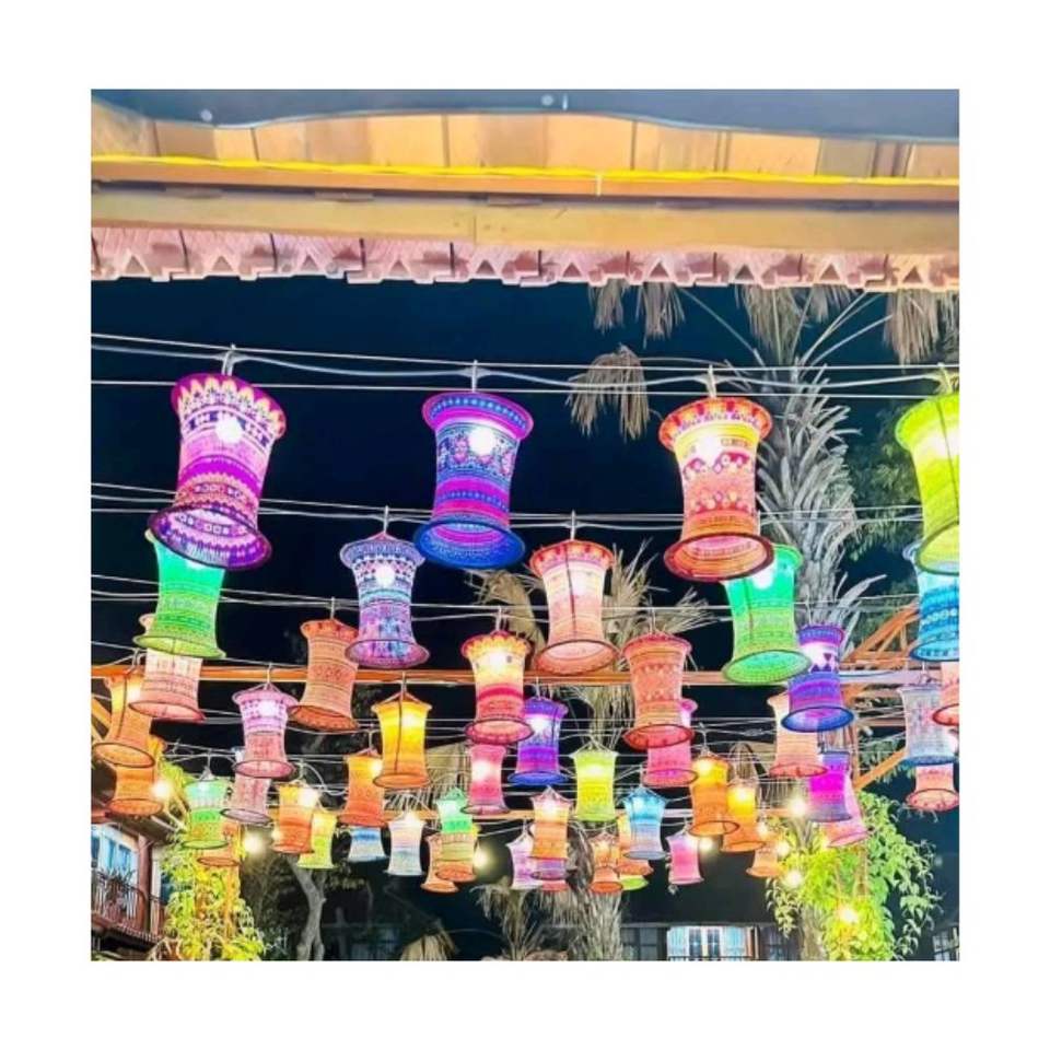 โคมไฟผ้าไหมฮม้งทำมือ โคมไฟแขวนผ้าสไตล์โบโฮ โคมไฟลายชนเผ่าหลากสีสัน ของตกแต่งบ้านสไตล์โบฮีเมียน ไฟประดับเทศกาล
