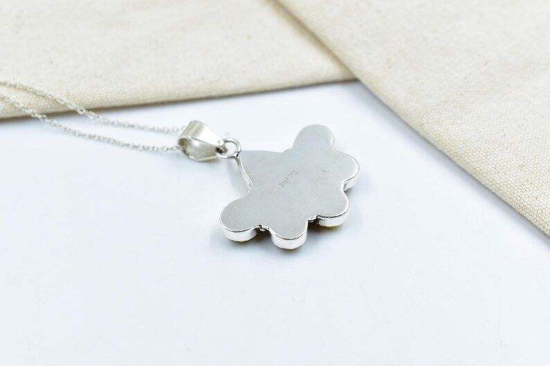 จี้เงินแท้ดอกรักเร่สีฟ้าครามทำด้วยมือมีโซ่ขนาด16นิ้วปรับได้ของขวัญเครื่องประดับที่ไม่เหมือนใคร