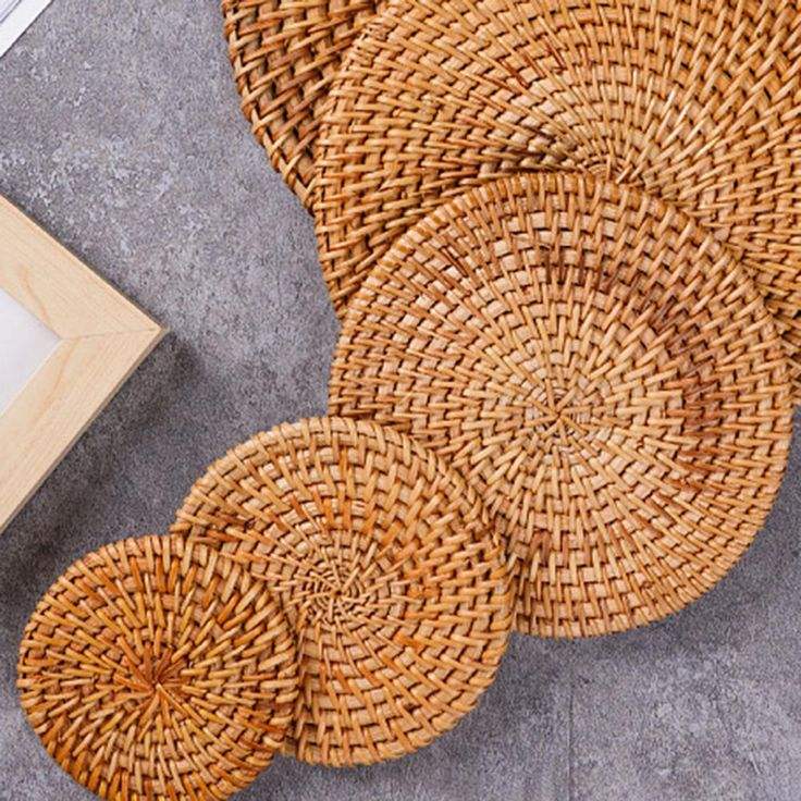 ถาดรองแก้วทำด้วยมือถาดรองแก้วทำจากไม้ไผ่แผ่นรองจานชาร์จฐานถ้วยทำด้วยมือ
