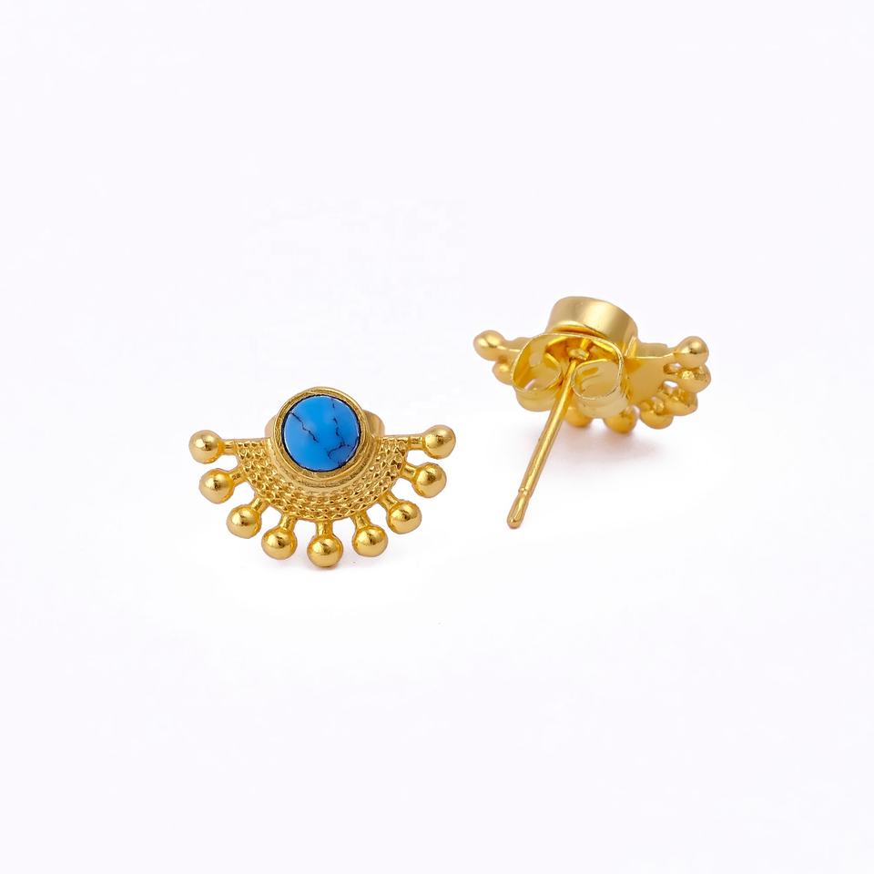 Handmade Howlite Turquoise Stone Stud Earrings Gold Plated Sunburst Fan Design Boho Gemstone Wholesale Jewelry Manufacturer
