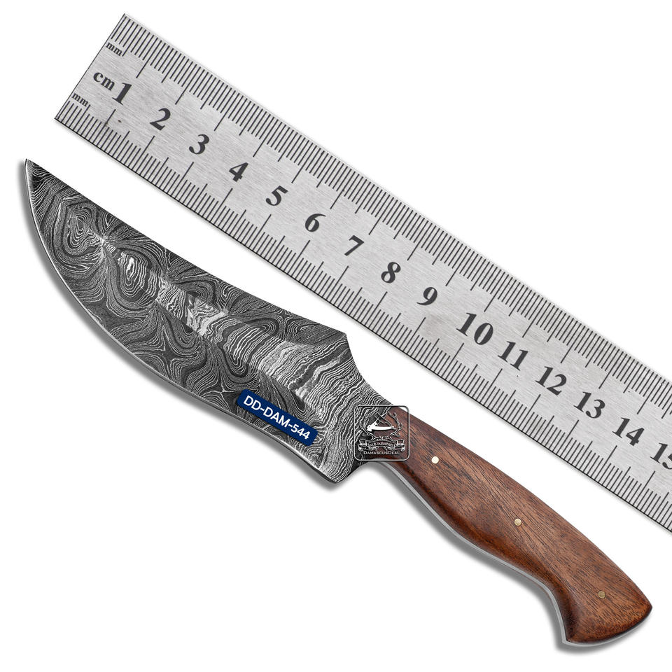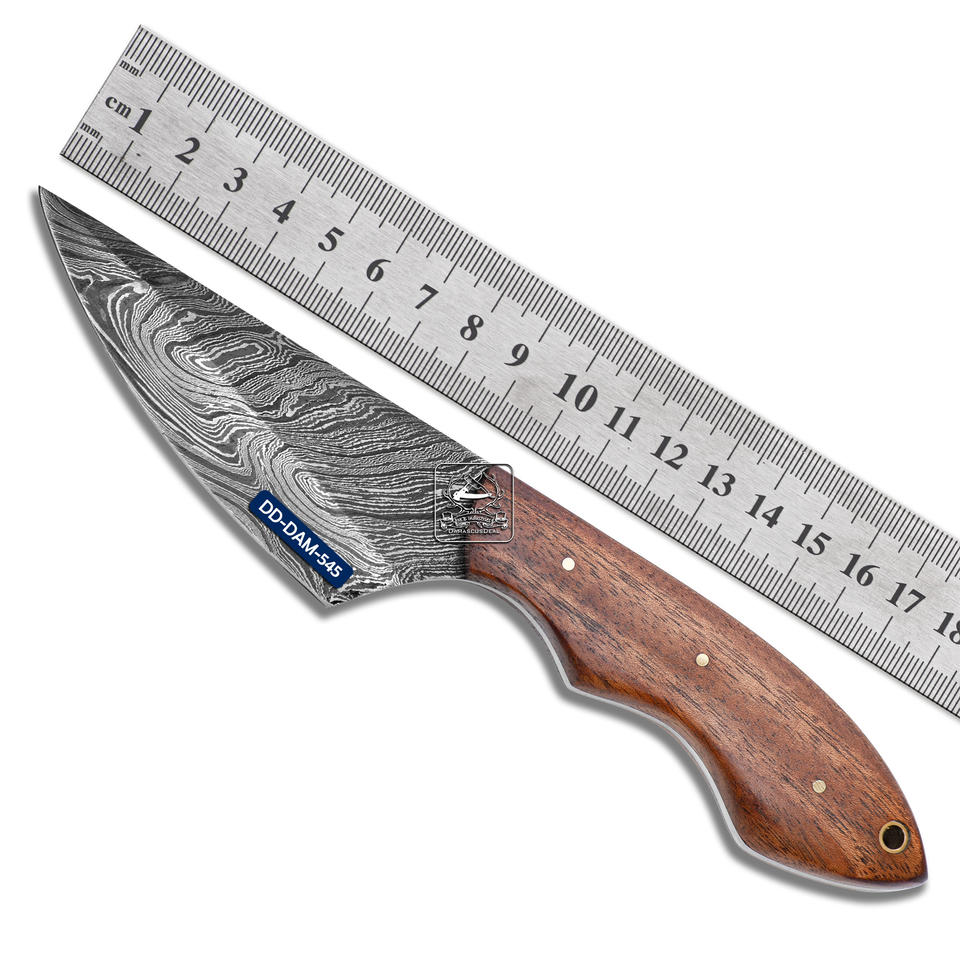 มีดล่าสัตว์ทำด้วยมือคุณภาพสูงด้ามไม้มะฮอกกานีปลอกหนังนูน DD-DAM-545ดามัสกัสใบมีดเหล็ก