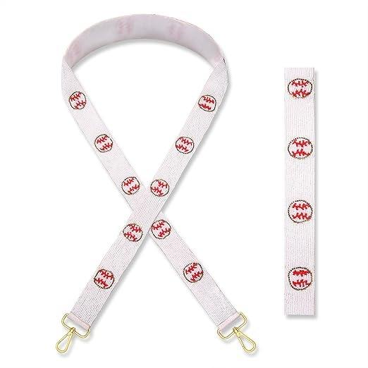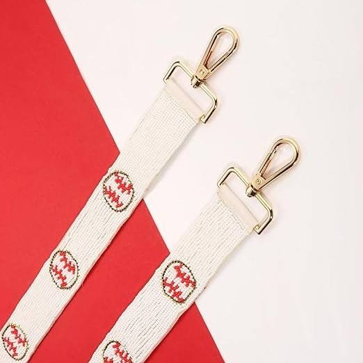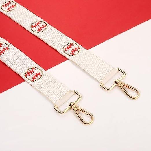 สายกระเป๋าทำมือประดับมุกเทียม น้ำหนักเบา ดีไซน์เย็บแบบเบสบอลสีแดง ปรับระดับได้ ใช้สะพายไหล่หรือสะพายข้าง