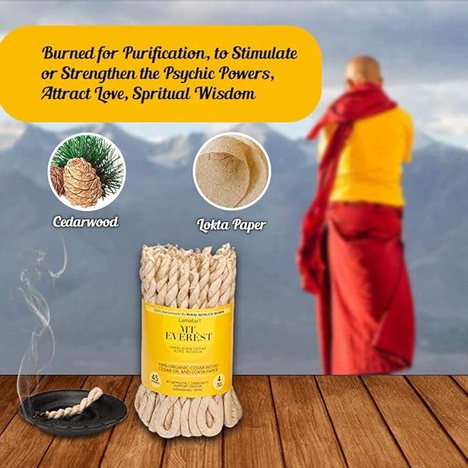 Handmade In Nepal Himalayan Cedar Rope Incense Set of 4 Pack Fragrant Home Peaceful Mind Burning Gently With Lokta Paper Wick
