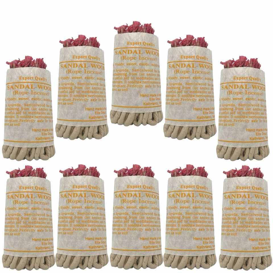 ชุดธูปเชือกไม้จันทน์แบบธิเบตทำด้วยมือชุด10ชิ้นสำหรับฝึกสมาธิแบบเบาๆพร้อมไส้ตะเกียงกระดาษธรรมชาติ