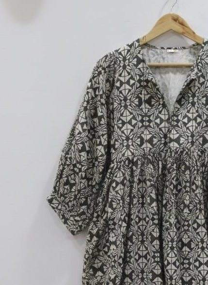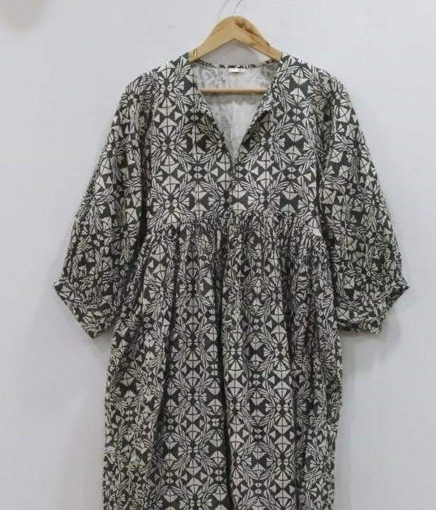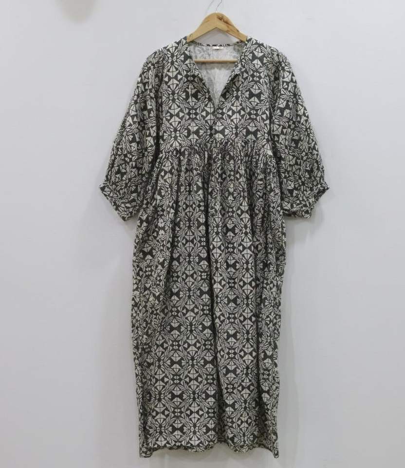 ชุดเดรสผ้าฝ้ายอินเดียทำมือ 100% สำหรับผู้หญิง | ชุดทำงานทางการ เป็นมิตรกับสิ่งแวดล้อม ระบายอากาศได้ดี ทรงเอไลน์ ลายดอกไม้ วาดด้วยมือ ธรรมชาติ