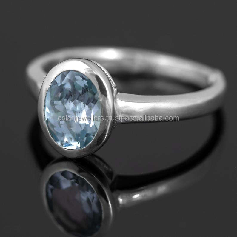 Handmade Indian 925 Sterling Silver Blue Topaz Quartz Gemstone Ring 18k Gold Plated Classic Engagement Wedding Party Style