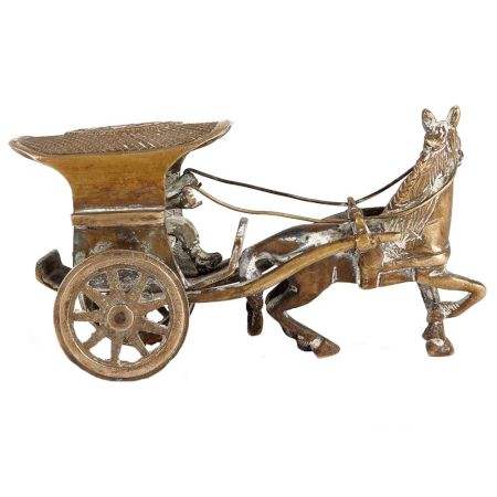 งานประติมากรรมรูปรถม้าโบราณทำมือจากทองสัมฤทธิ์อินเดีย ของตกแต่งบ้าน ขนาด 8 x 8 x 15 ซม. รุ่น SNC-139