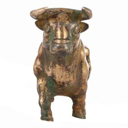รูปปั้นคู่กระทิงทองเหลืองพร้อมเขา