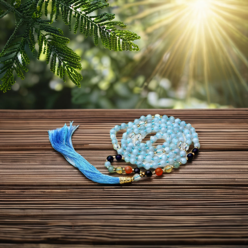 ทำด้วยมือศิลปินอินเดีย7จักระ pulsera 108 knotted Mala ลูกปัดสร้อยคอโบฮีเมียนอะความารีนเครื่องประดับโยคะฮินดูแฟชั่นลูกปัด