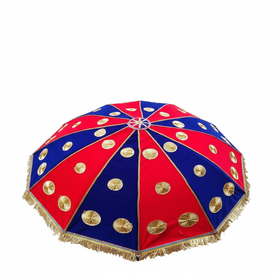 ร่มโบฮีเมียนอินเดียทำมือ ปักลายเต็มผืน จากผ้าส่าหรีเก่า ดีไซน์ชนเผ่าแบบดั้งเดิม
