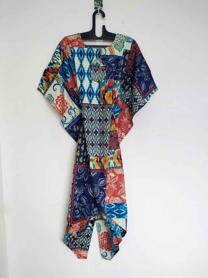 ชุดเดรสคาฟทันสไตล์โบโฮทำมือจากผ้าฝ้ายอินเดีย เหมาะสำหรับใส่ไปเที่ยวชายหาด สวมใส่สบาย