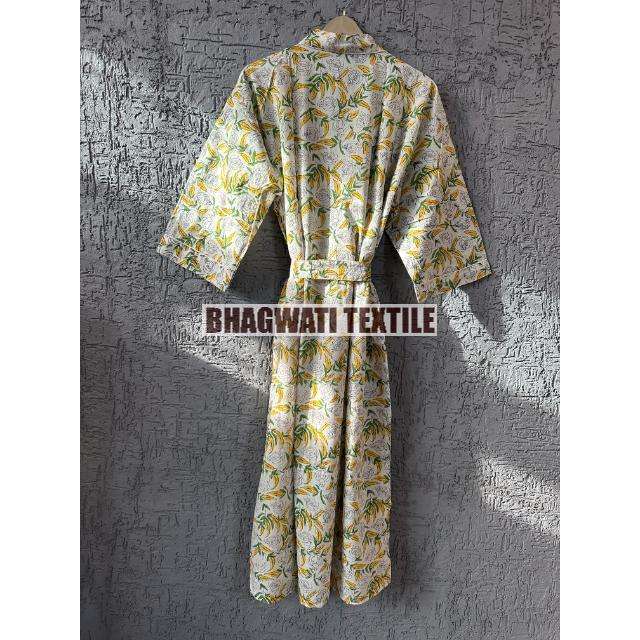 เสื้อคลุมกิโมโนพิมพ์ลายดอกไม้ผ้าฝ้ายอินเดียทำด้วยมือสำหรับผู้หญิงชุดคลุมสำหรับใส่ในสปาและสวมใส่ชายหาดสำหรับสวมใส่ในโอกาสฤดูร้อน
