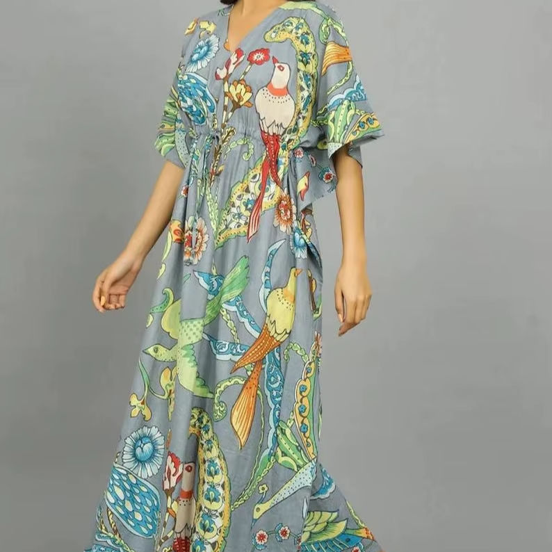 ชุดคลุมชุดกิโมโนผ้าฝ้ายชุดคลุมชายหาดทำด้วยมือจากผ้าฝ้ายอินเดีย
