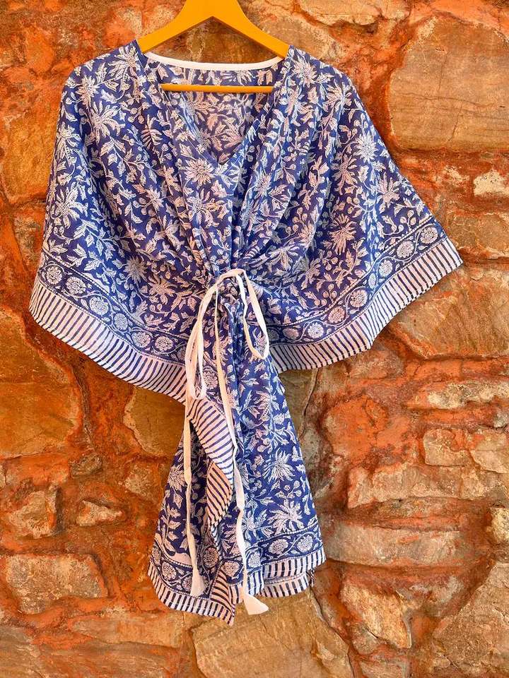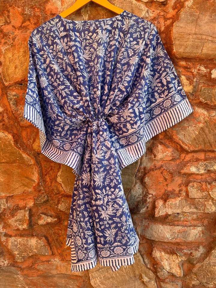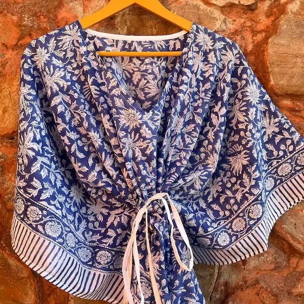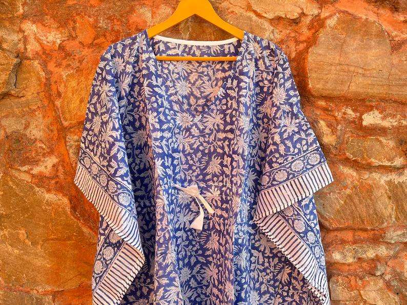 ชุดเดรสแม็กซี่คาฟตันทำด้วยมือจากผ้าฝ้ายอินเดียชุดเดรสลำลองพิมพ์ลายดอกไม้ชุดคลุมชายหาดซักได้ธรรมชาติ