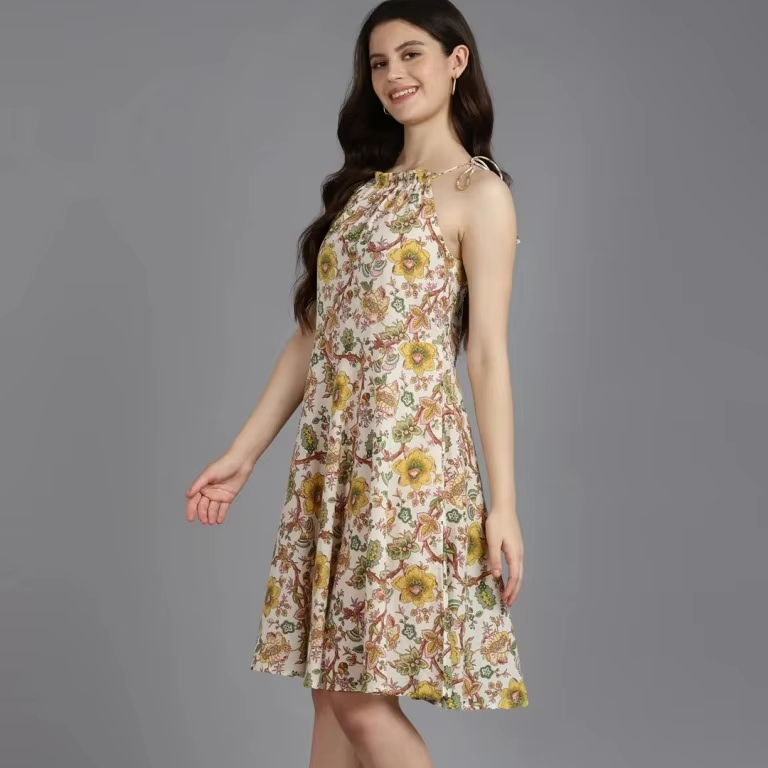 ชุดเดรสผ้าฝ้ายอินเดียทำด้วยมือชุดเดรสสั้นแขนกุดพิมพ์ลายดอกไม้ชุดงานปาร์ตี้ชุดกระโปรงแนวธรรมชาติมีสไตล์ของขวัญเฉพาะบุคคลลดราคา!