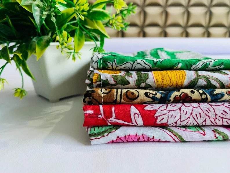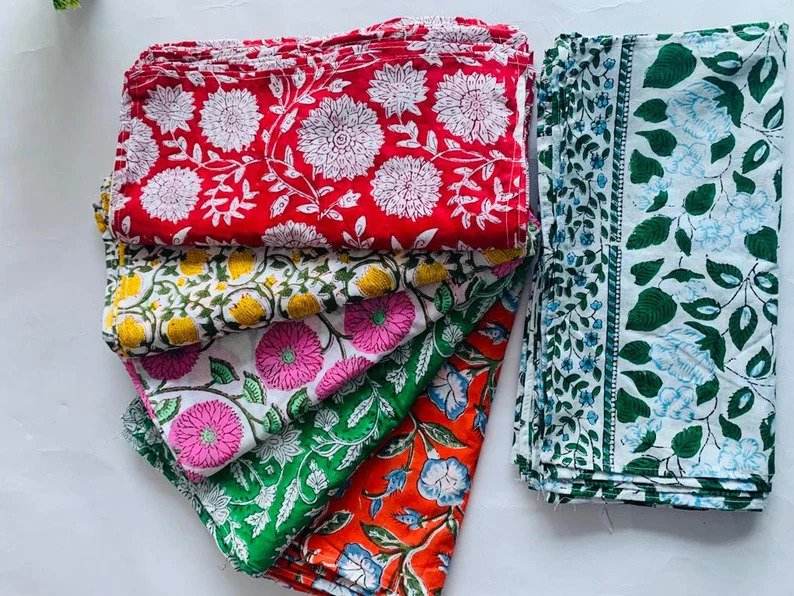 ชุดผ้าเช็ดปากแบบใช้แล้วทิ้งทำด้วยมือจากผ้าฝ้ายอินเดียพิมพ์ลายบล็อกสี่เหลี่ยมโลโก้สีสันสดใสสำหรับงานแต่งงาน