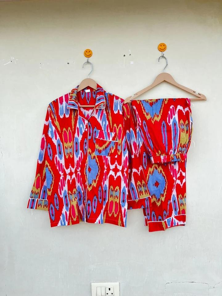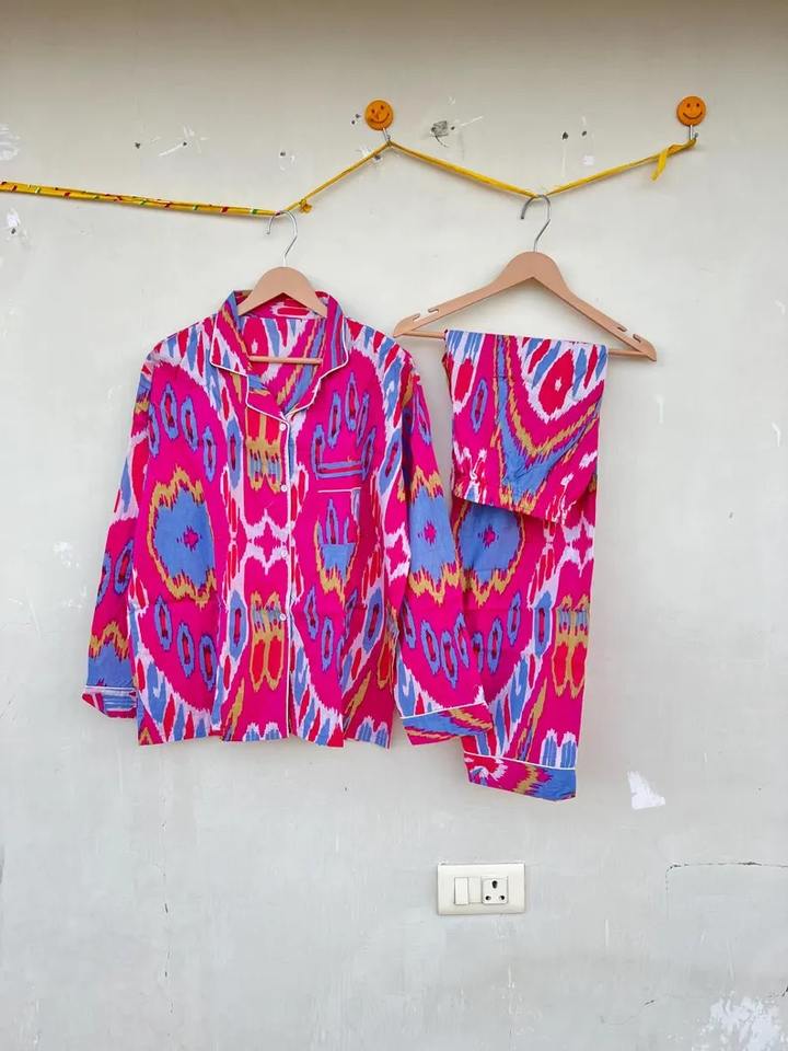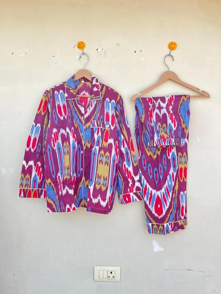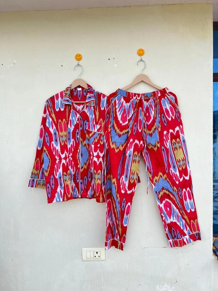 Handmade Indian Cotton Pajama Set Lightweight Loungewear Block Print Pajama Set Unique Print Night Suit Summer Cotton Pajama Set
