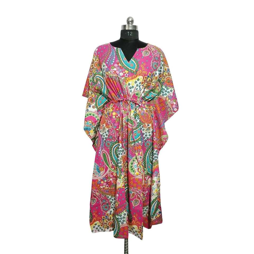 ชุดคลุมอาบน้ำสไตล์ฮิปปี้ แขนสั้น ลายเพสลีย์ ผ้าฝ้ายอินเดียทำมือ ทรงสบายสำหรับผู้หญิง สวมใส่ได้ทั้งเป็นชุดคลุมอาบน้ำและชุดคามิโน