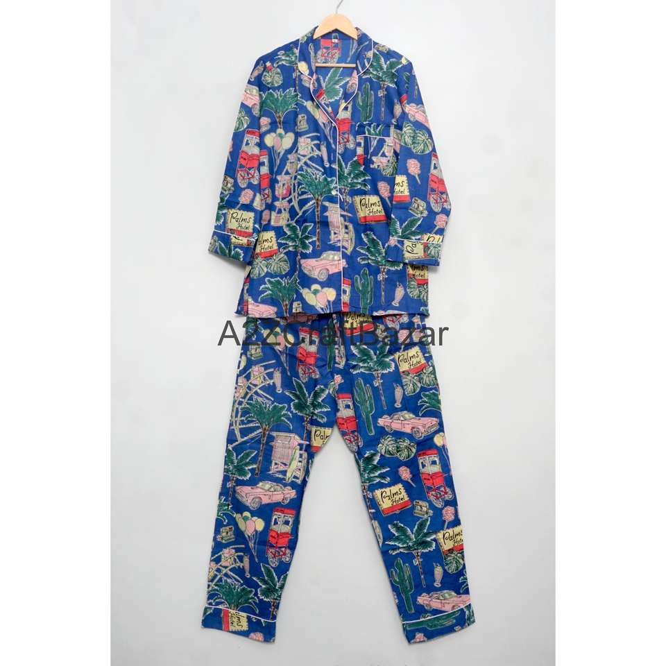 ชุดนอนผู้หญิงลายดอกไม้สไตล์วินเทจสุดหรู พิมพ์ลายดิจิทัลแบบอินเดีย ทำมือ พรีเมียม ผ้าฝ้าย 100% แขนยาว เอวยางยืด