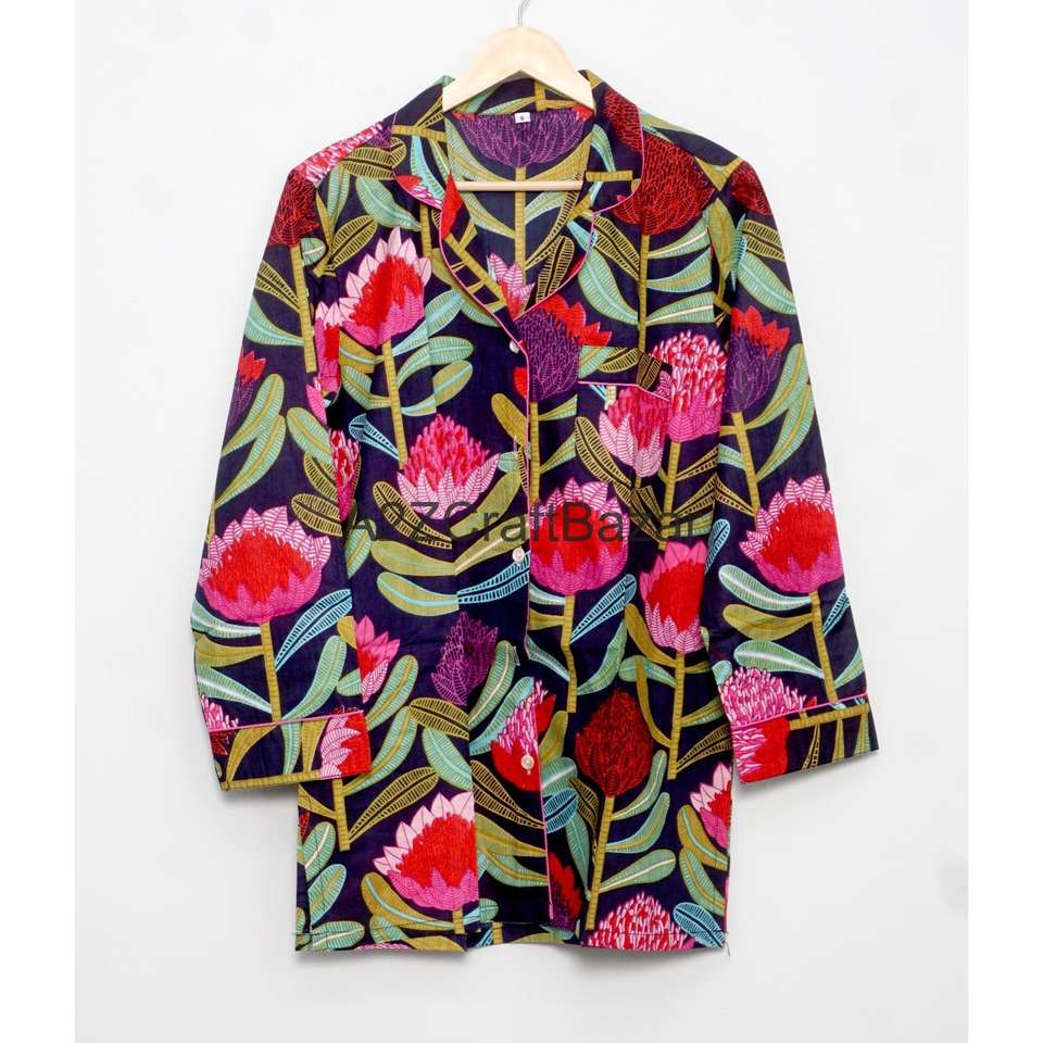ชุดนอนผู้หญิงพิมพ์ลายดิจิทัลสไตล์อินเดีย ทำมือ ผ้าฝ้ายแท้ 100% พรีเมียม โรแมนติก สำหรับฤดูหนาวและฤดูร้อน