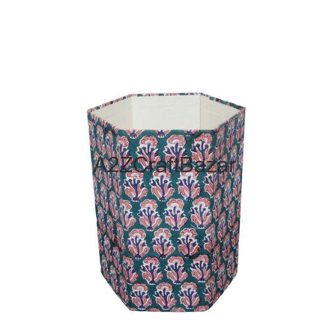 ถังขยะทรงหกเหลี่ยมแบบเปิดด้านบน พับได้ ทำจากกระดาษแข็งทำมือจากฝ้ายอินเดีย เป็นมิตรกับสิ่งแวดล้อม ลายพิมพ์ DIY สวยงาม เหมาะสำหรับตกแต่งบ้าน