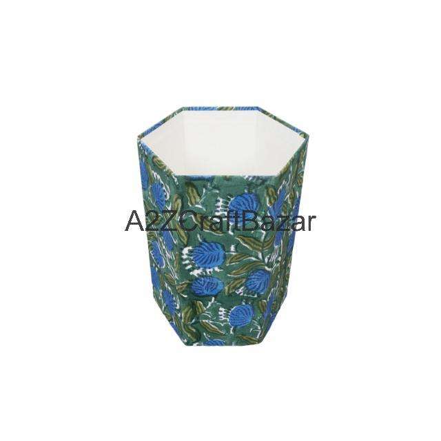 ถังขยะกระดาษแข็งแบบเปิดด้านบน ผลิตด้วยมือจากอินเดีย เป็นมิตรกับสิ่งแวดล้อม พร้อมฝาปิดแบบม้วน ลายพิมพ์เรขาคณิต DIY