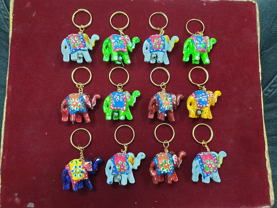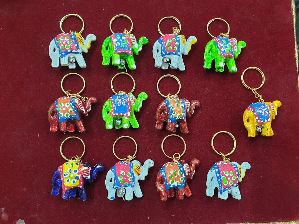 พวงกุญแจช้างอินเดียทำด้วยมือ | พวงกุญแจราจิตันีสีสันสดใสพวงกุญแจไม้ | ของขวัญของที่ระลึกทำด้วยมือ | 1แพ็ค = 12ชิ้น