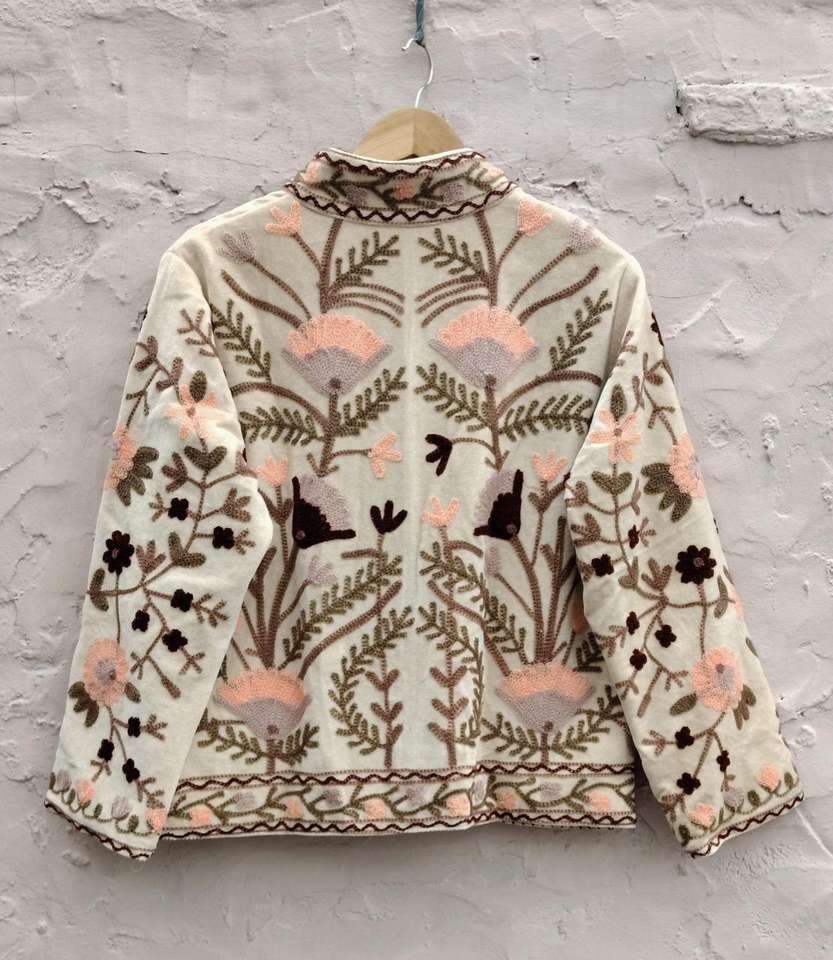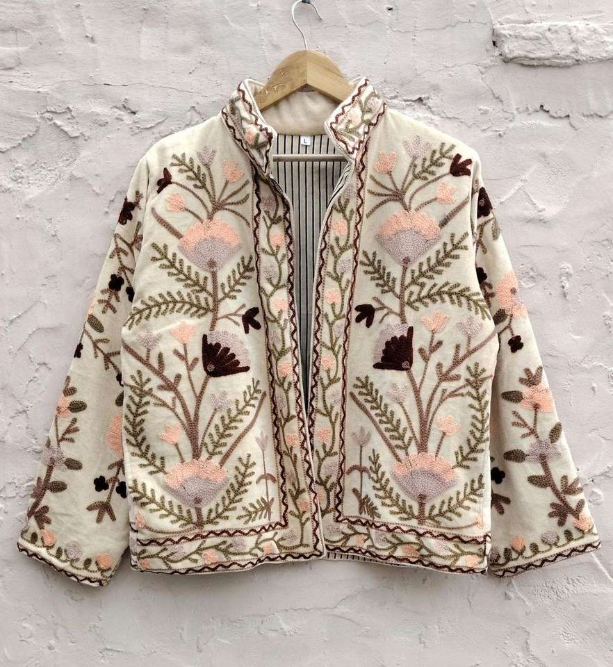 เสื้อแจ็คเก็ตกำมะหยี่ปักลายอินเดียทำมือ สไตล์โบฮีเมียน เสื้อโค้ทฤดูหนาว แจ็คเก็ตกำมะหยี่ปักลายซูซานี สไตล์โบฮีเมียน แจ็คเก็ตฟรีไซส์